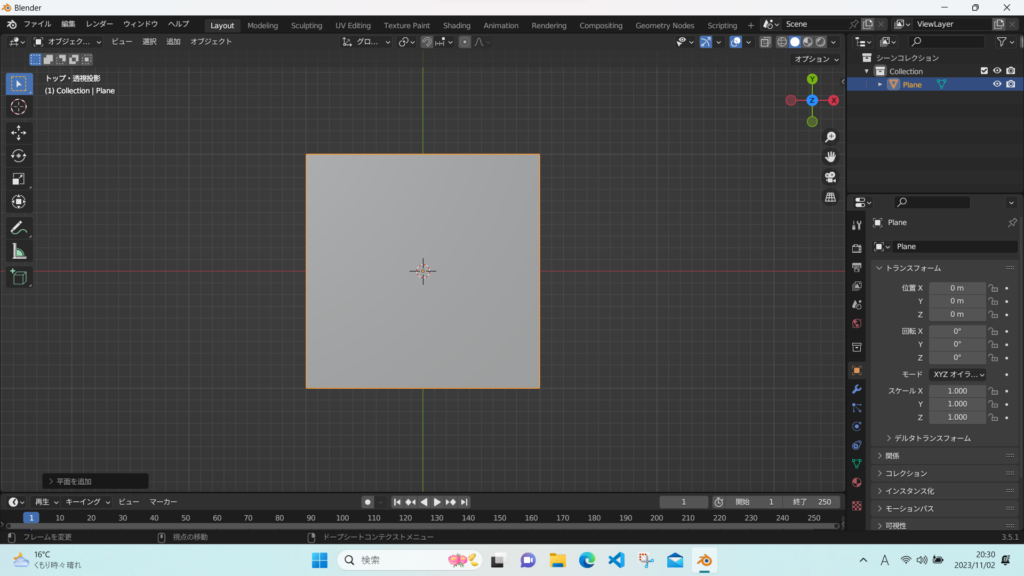 葉先側の頂点をZ軸上方向に移動させます。この時、葉先は先ほど移動させた